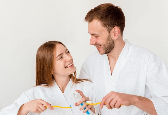 Over time, teeth naturally darken due to coffee, tea, wine, tobacco, and normal aging. Professional whitening treatments safely lift these stains and brighten your smile several shades.