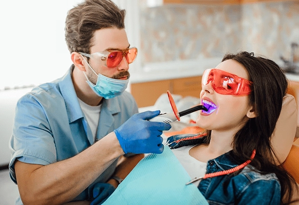 When a cavity is identified, we numb the area and gently remove decayed enamel and dentin. We then isolate the tooth to keep it dry and apply an adhesive. The composite resin is layered into the cavity, each layer hardened with a curing light. The filling is shaped to fit your bite and polished for a smooth finish. Because composite bonds to the tooth, it provides additional support and helps prevent breakage. Tooth‑colored fillings are ideal for small to medium cavities on front or back teeth and allow you to smile and laugh without visible metal.